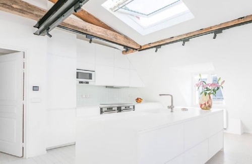 A beautiful large open space with so many skylights that sunshine floods in through to the living room and kitchen. You immediately feel refreshed and relaxed when you walk through the door. Packed full of designer furniture throughout with small touches like fresh flowers. Authentic sketches from films like "My Little Toaster" create a home full of character even when the colour palette throughout is pure white. There are three large bedrooms all set up with guest's comfort in mind and a unique loft space with a view of the Eiffel Tower that's pretty special at night.There are three large bedrooms all set up with guest’s comfort in mind and a unique loft space with a view of the Eiffel Tower that’s pretty special at night