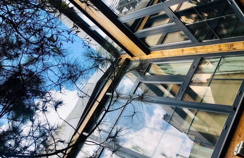 You will cross a courtyard to access the house , you'll arrive in front of a glass door giving access to a small garden at the entrance.
