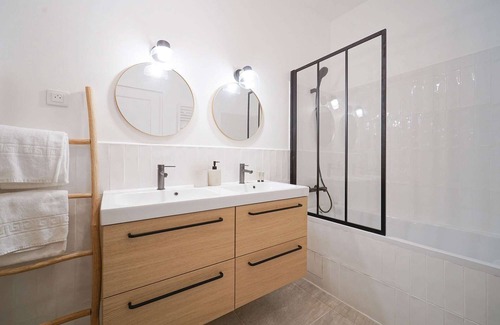 Parisuites 6 people accomodation Central Grands Boulevards Design Folies Bergères has 2 Bedrooms , 3 Bathrooms, and max occupancy of 6 people. The minimum rental for this property is 1 nights, but this can change depending on the season you plan on staying. Previous guests have given good rated it, and VRBO labeled it a top-rated Apartment because of the excellent services rendered by the owner or manager of this Apartment, and has consistently provided great experiences for their guests. Most families or guests that use it recommend it to their friends and some of them are repeat guests. Apartment has a friendly neighborhood, and the Saint-Merri has interesting places to visit. If you want to learn more about the Apartment in Saint-Merri, such as places to visit and things to do nearby, you can check below to learn more.